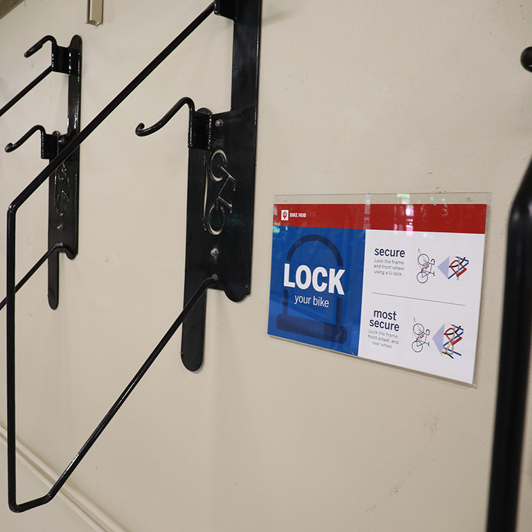 The hub is accessible 24/7 to students, faculty, and staff with a valid CrimsonCard. Users are highly encouraged to lock their bikes using a U-lock and running it through the frame and front and rear wheels of the bike. Indiana University is not responsible for lost or stolen items inside the hub.